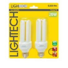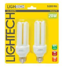 Iluminación: profesional, residencial e industrial AHORRADOR TRITUBO TWIN PACK 3U T4 20W E27 2700K LUZ AMARILLA 220V-60HZ Código: 88-2X20W/3U/T4-2700K/220V