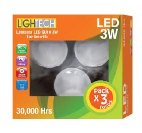 LAMPARA LED THREE PACK 3W GU10 3000K LUZ AMARILLA 220V-60HZ
