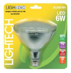 Iluminación: profesional, residencial e industrial REFLECTOR LED PAR30 6W E27 3000K LUZ AMARILLA 60G MULTIVOLTAJE Código: 33-PAR30/LEF/6W/30K-B/M